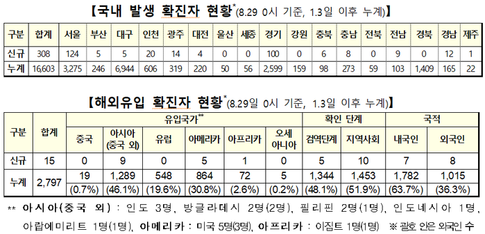 하루 신규 확진자 중 국내발생은 308명으로 전날보다는 줄었지만 이틀 연속 300명대에 나흘 연속 300명 이상을 기록했다.