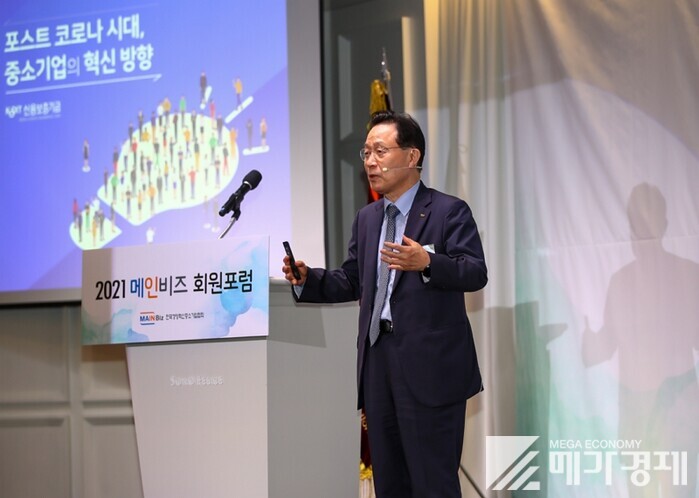 윤대희 신용보증기금 이사장은 28일 서울 삼성동 소노펠리체컨벤션에서 열린 ‘2021 메인비즈 회원포럼’에서 ‘포스트 코로나 시대, 중소기업의 혁신방향’을 주제로 특별강연을 진행했다.
