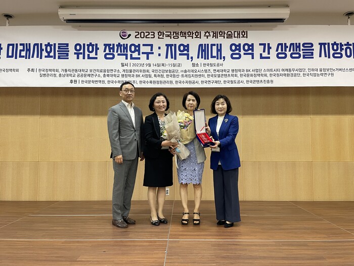 ▲15일, 한국철도공사에서 개최된 「제2회 한국 ESG 혁신정책 대상」 시상식에서 이미애 한국공항공사 부사장(왼쪽부터 3번째)이 지배구조 부문 최우수상을 수상하고 기념촬영을 하고 있다. |