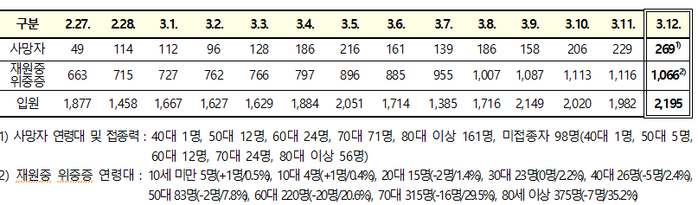 위중증 환자는 1천66명으로 직전일(1116명)보다 50명 줄었지만 닷새 연속 1천명대를 이어갔다.