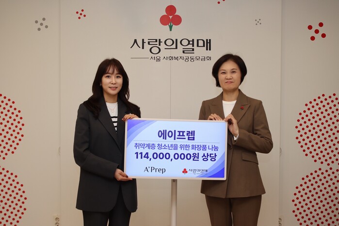 [메가경제=양대선 기자] 글로벌 뷰티 브랜드 에이프렙이 취약계층 청소년들의 피부 건강과 자존감 향상을 위해 약 1억 1천만원 상당의 화장품을 기부했다고 서울 사회복지공동모금회(회장 김재록, 이하 서울 사랑의열매)가 7일 밝혔다.
