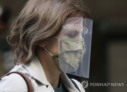 ▲ 페이스 마스크를 쓴 한 여성이 9일(현지시간) 뉴욕 증권거래소 부근을 겆고 있다. [사진= UPI/연합뉴스] |