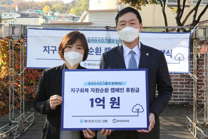 동아쏘시오그룹은 지난 10일 서울시 종로구에 위치한 환경운동연합 사무실에서 ‘지구회복 자원순환 캠페인’ 기부금 전달식을 진행했다고 11일 밝혔다.