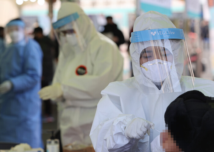 ▲ 26일 오전 서울역 광장에 설치된 중구 임시 선별검사소에서 의료진이 검체를 채취하고 있다. [사진= 연합뉴스] |