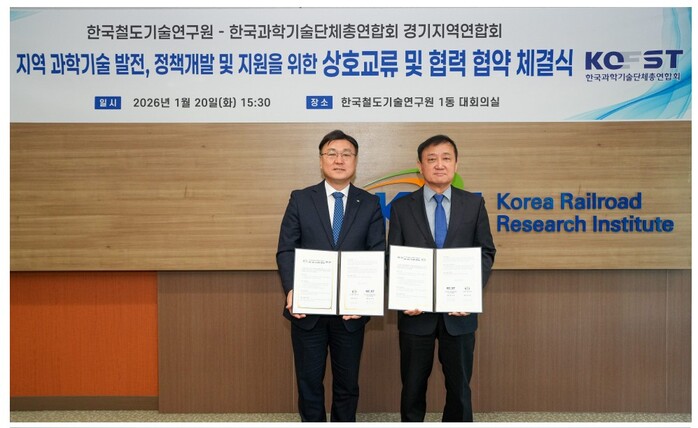 이번 협약을 통해 철도연의 연구 성과가 경기도 지역단위 철도정책 및 산업 현장에 효과적으로 적용·연계될 것으로 기대된다.