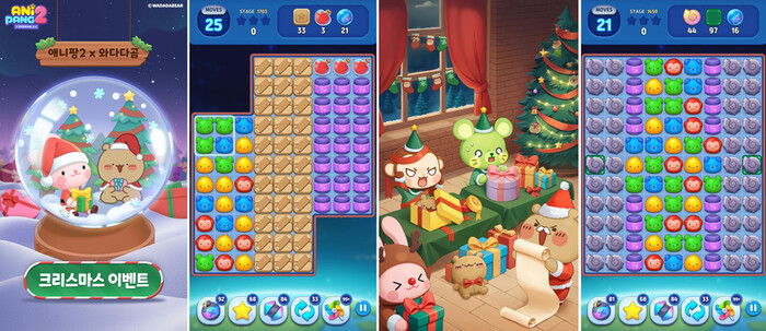 | ▲ 와다다곰과 크리스마스 이벤트를 진행하는 애니팡2 이미지 [사진=위메이드플레이] |