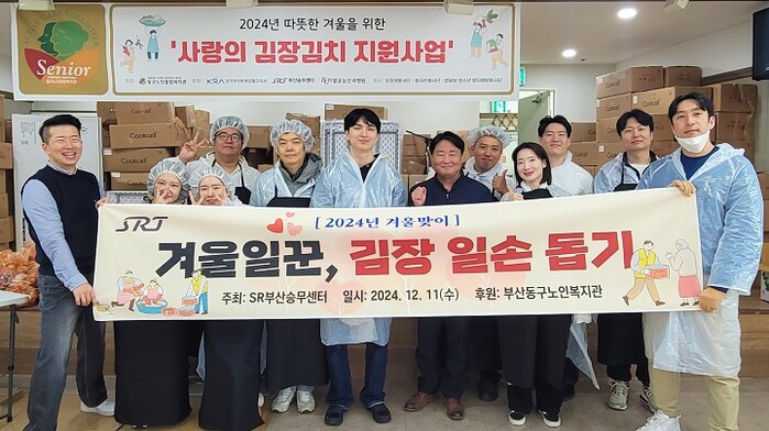 | ▲에스알은 11일 부산 동구 노인복지관에서 어려운 이웃들이 추운 겨울을 따뜻하게 나는데 도움이 될 김치를 담그고 포장하는 김장 일손 돕기에 나섰다. |