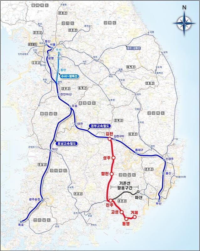 | ▲남부내륙철도 사업 노선도 |