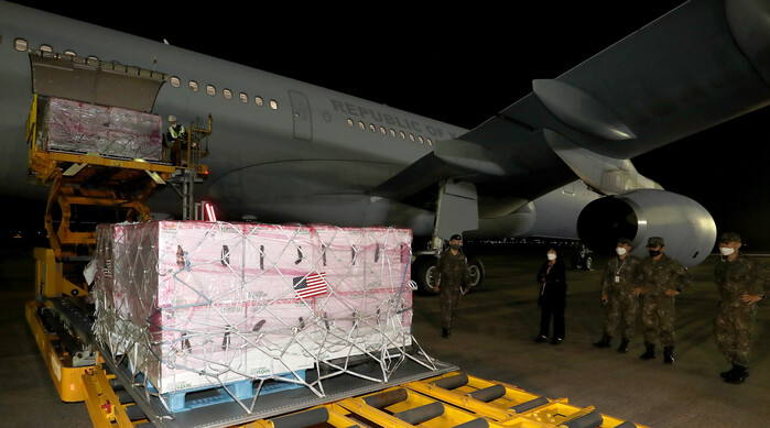 이번에 도착한 얀센 백신은 조 바이든 미국 대통령이 지난달 21일 워싱턴DC 백악관에서 개최된 한미정상회담 당시 약속한 55만명분보다 배 가까이 늘어난 물량이다.