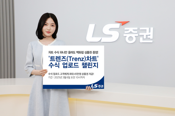 [메가경제=윤중현 기자] LS증권은 트렌즈차트에 차트 수식을 업로드한 고객에게 백화점 상품권과 기프티콘을 제공하는 ‘트렌즈(Trenz) 수식 업로드 챌린지’ 이벤트를 진행한다고 30일 밝혔다.