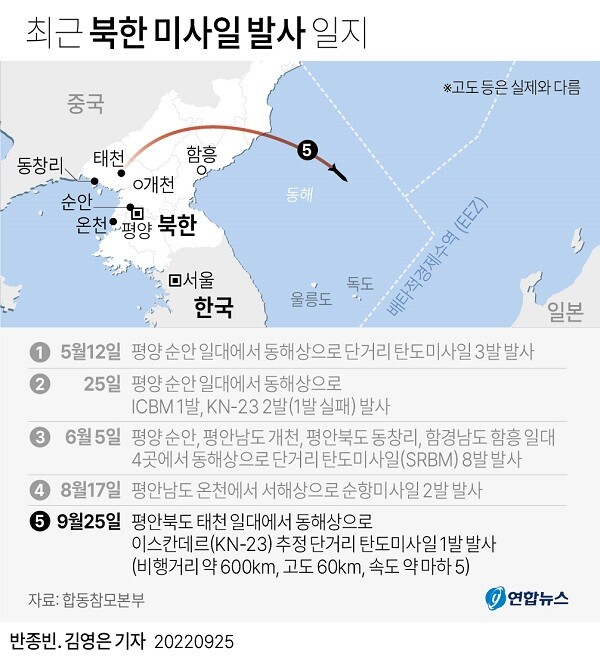 ▲ 최근 북한 미사일 발사 일지. [그래픽=연합뉴스] |