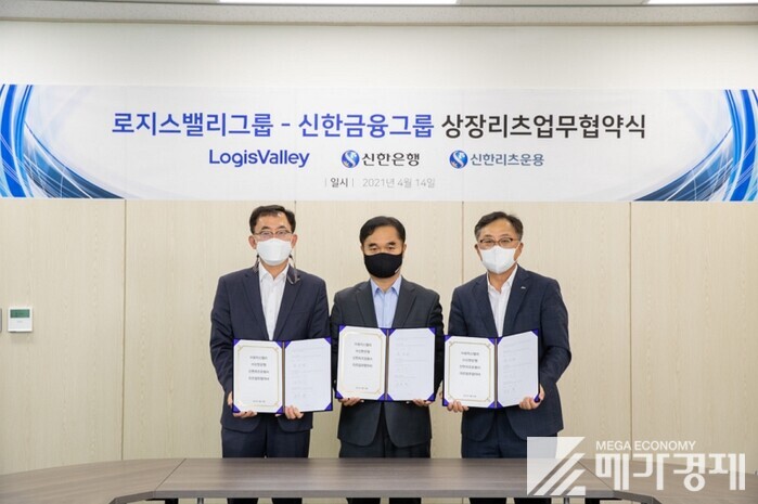 신한금융그룹(회장 조용병)의 GIB사업그룹(그룹대표 정근수)과 신한리츠운용 (대표이사 남궁훈)은 14일 오후 경기도 성남에 위치한 로지스밸리 본사에서 로지스밸리(대표이사 윤건병)와 리츠 설립을 위한 업무협약을 체결했다.