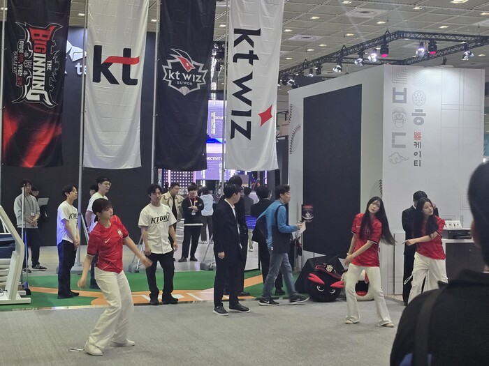 체험형 콘텐츠도 관람객 참여를 이끌었다. ‘모두의 캔버스’에서는 AI 카메라를 통해 자신의 모습이 전광판에 등장하는 경험을 제공했고, 특히 AI 응원댄스 챌린지에는 kt wiz 소속 치어리더들이 직접 시연을 보여 많은 이들의 이목을 끌었다. 이 밖에도 수원 AI 스타디움을 구현한 공간에서는 ‘AI 치어풀’ 제작과 함께 kt wiz 선수를 기반으로 한 AI 휴먼 서비스 체험이 진행됐다.