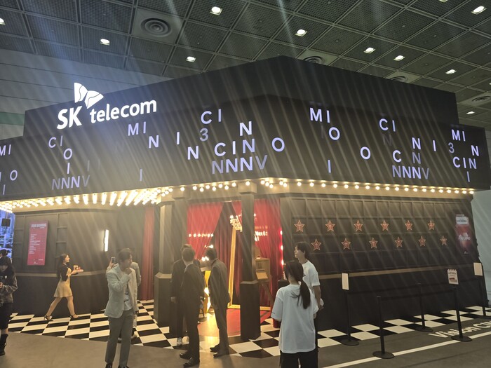전시장 안쪽에 마련된 ‘비전 시네마’는 대형 스크린을 통해 SK텔레콤이 그리는 미래 AI 세계가 영상으로 구현된 공간으로, 실제 영화관 같이 꾸며 관람객들의 이목을 끌었다.