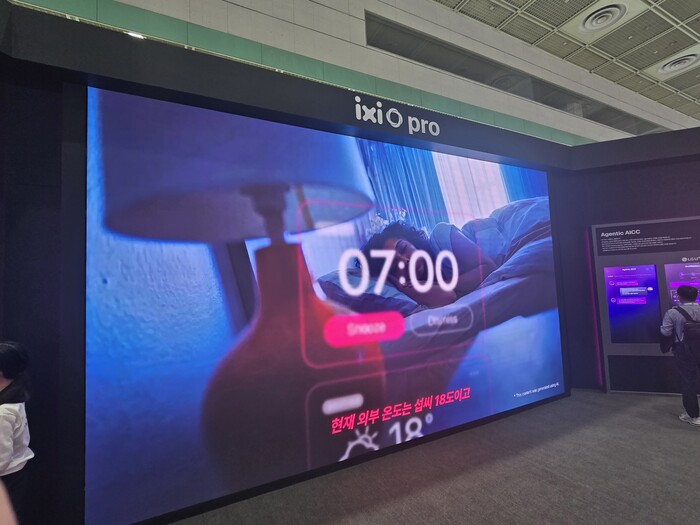 전시장 중앙에서는 AI 에이전트 ‘익시오(ixi-O)’의 진화형 모델 ‘익시오 프로(ixi-O Pro)’ 시연이 진행되고 있었다. 관람객이 음성으로 질문을 던지자, AI가 발화 맥락과 의도를 분석해 다음 행동을 제안하는 방식이다. 단순 음성 인식을 넘어 ‘상황을 이해하는 AI’라는 점을 강조한 전시로, 키오스크 체험과 영상 시연을 통해 일상과 업무 전반에 적용된 활용 사례가 이어졌다.