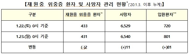 위중증, 전날보다 2명 줄어 431명...중환자 병상 가동률 19.9%