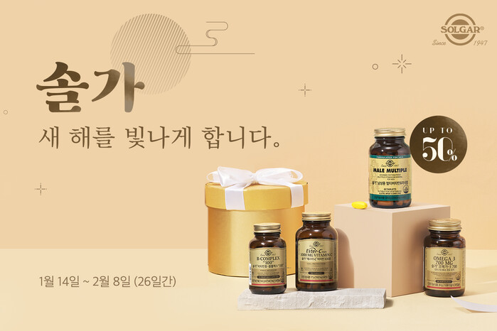 [메가경제=최낙형 기자] 프리미엄 비타민 전문 브랜드 한국솔가㈜는 솔가몰과 백화점에서 설날 맞이 할인 프로모션을 진행한다고 14일 밝혔다.