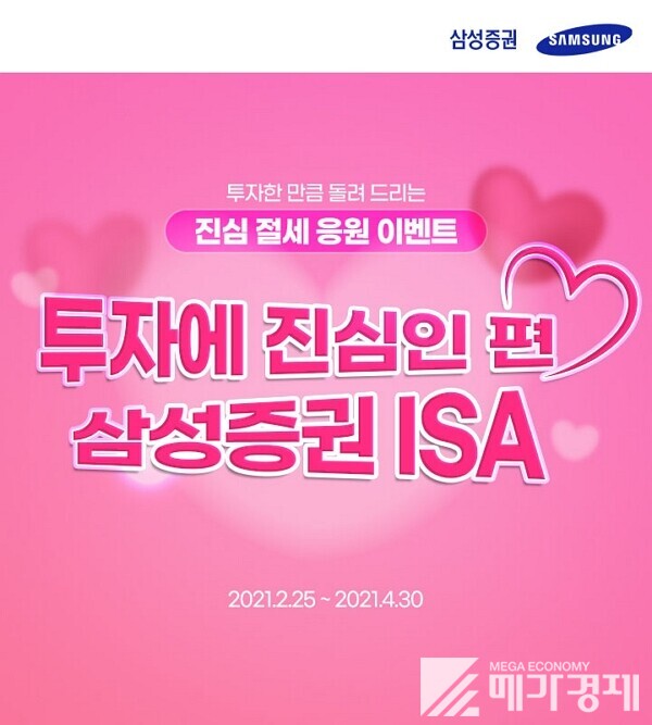 ▲ 삼성증권(사장 장석훈)은 '중개형 ISA'의 사전 이벤트에 이어 추가 이벤트를 진행한다 [사진=삼성증권 제공] |
