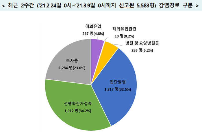 ▲ 최근 2주간 감염경로 구분. [출처= 중앙방역대책본부] |