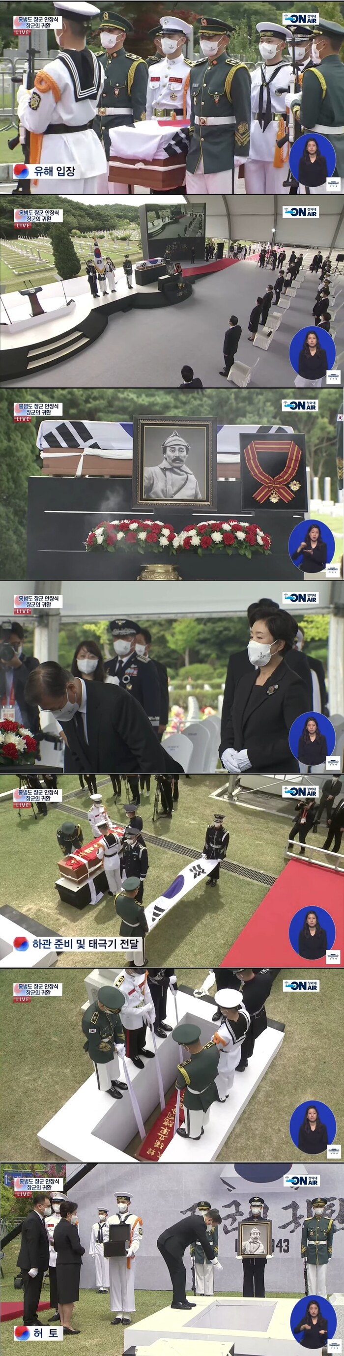 ▲ 홍범도 장군 안장식 '장군의 귀환' 진행 과정. [출처=청와대 유튜브 캡처] |