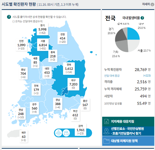 ▲ 코로나19 시도별 확진환자 현황. [출처= 중앙방역대책본부] |
