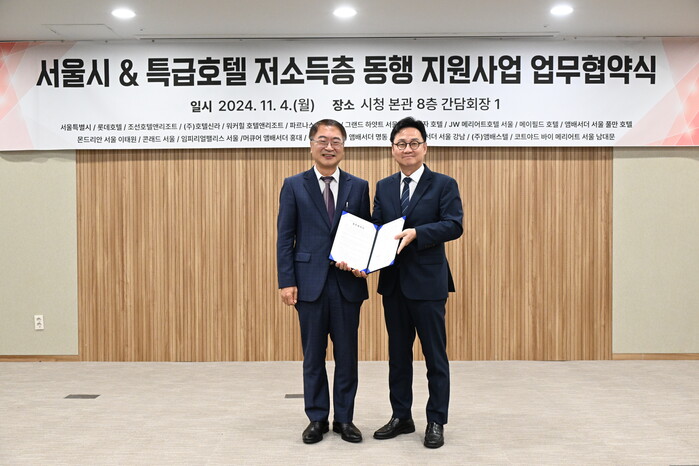 '저소득층 동행 지원사업'은 서울시가 24개 특급호텔과 협력해 취약계층 생활 환경 개선에 기여하기 위하여 마련한 사업으로, 이날 협약식에는 각 호텔 대표와 관계자들이 참석하여 협약서 서명식과 감사장 수여식, 기념 촬영 등을 진행했다. ‘저소득층 동행 지원사업’은 2015년 시작되었으며, 현재까지 14개 특급호텔이 178,859점을 기부해 취약계층에 실질적인 도움을 주고 있다.