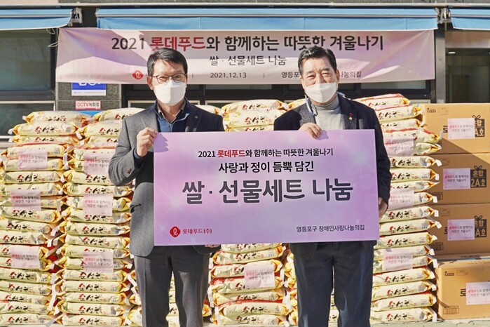 롯데푸드 샤롯데봉사단은 2014년부터 8년째 영등포구 장애인사랑나눔의집에 식료품과 방한용품 등을 지원하는 지역 사회공헌활동을 이어오고 있다.