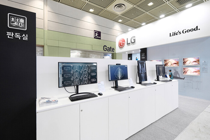 LG전자 전시 부스는 코엑스 3층에 마련돼 있으며, 각 제품의 용도를 직관적으로 알 수 있도록 수술실, 판독실, 엑스레이 촬영실로 공간을 나눠 관련 제품들을 전시 중이다.