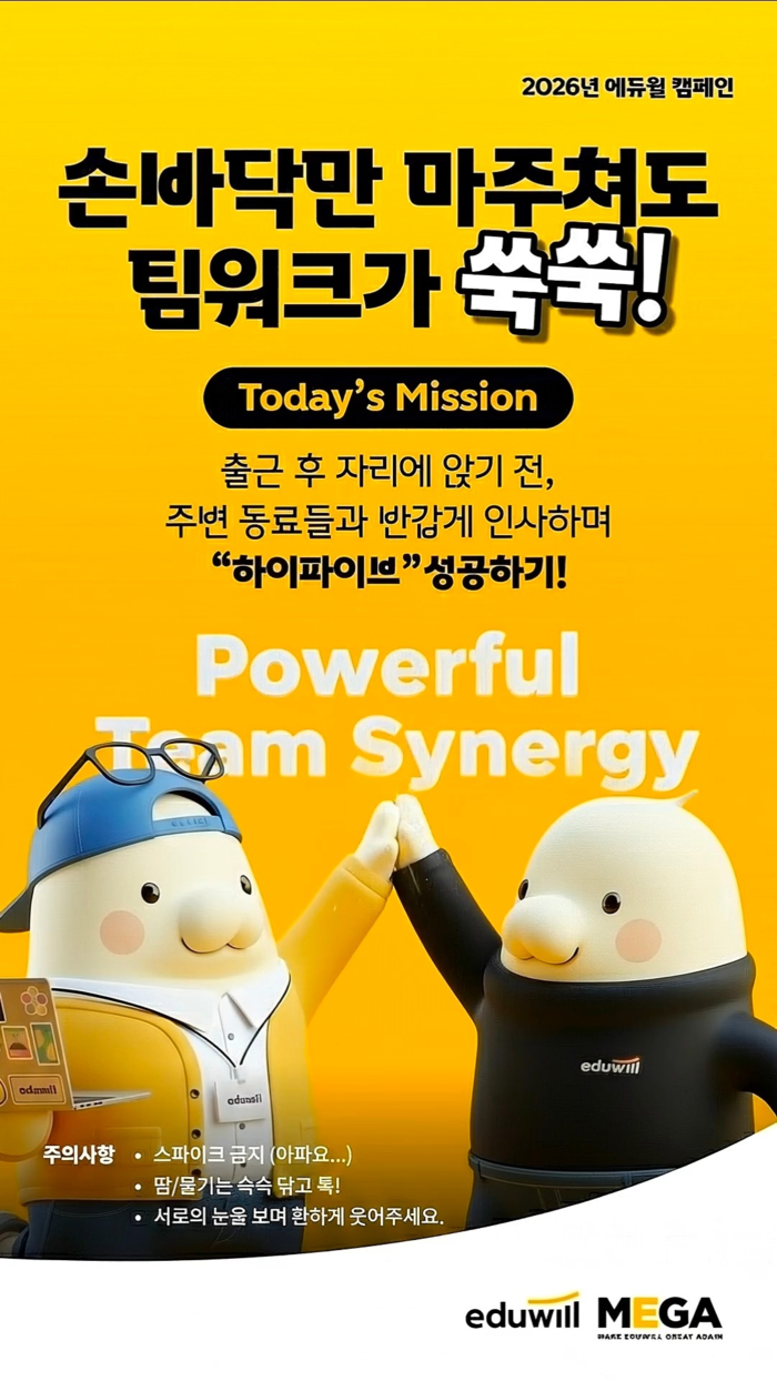 커넥터 회의를 통해 제안된 이 캠페인은 ‘손바닥만 마주쳐도 팀워크가 살아난다’는 취지 아래, 활기찬 주말을 앞둔 금요일 아침을 응원으로 시작하자는 의미를 담았다.