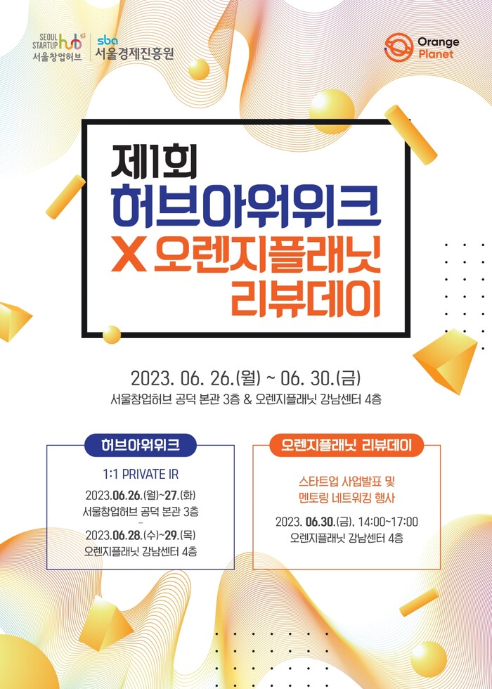 이 행사를 통해 서울창업허브 기업 12개 사와, 오렌지플래닛 기업 10개 사가 1:1 프라이빗 IR에 참가했다.