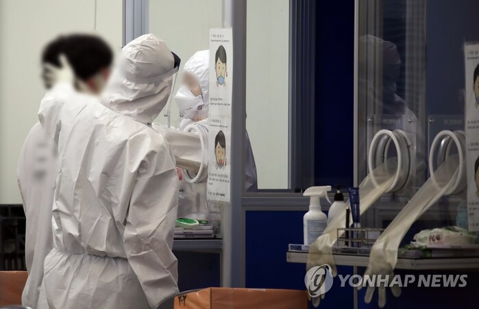 ▲ 서울 노원구보건소 선별진료소에서 시민들이 검사에 앞서 의료진과 상담하고 있다.[사진= 연합뉴스] |