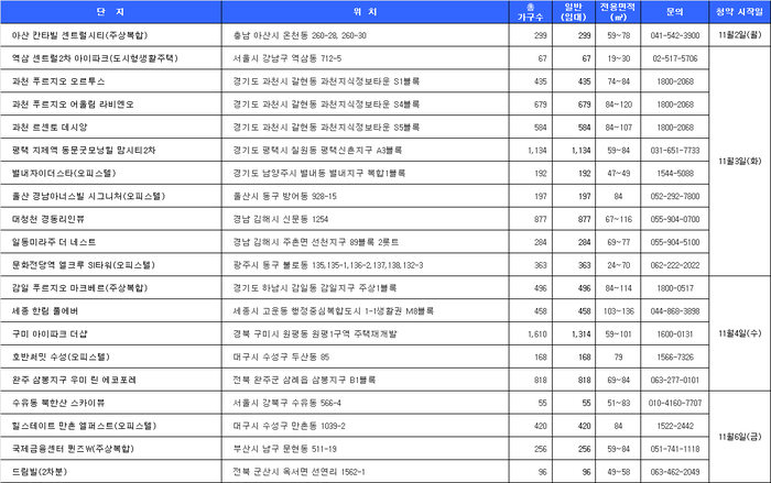 11월 첫 주 당첨자 계약 단지는 15곳이다.