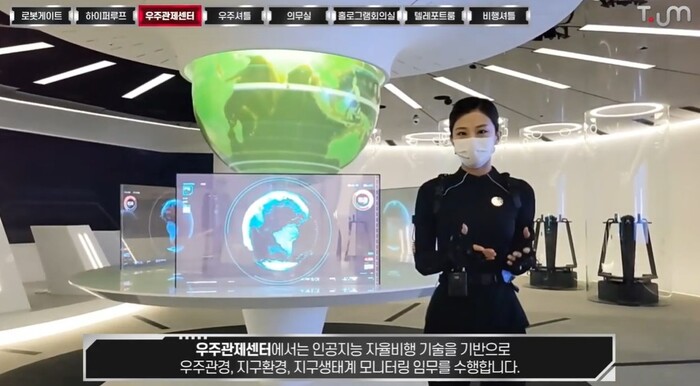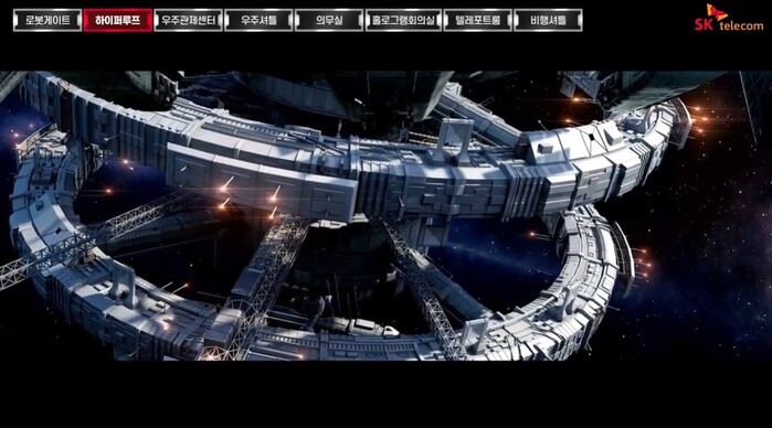 | ▲ 우주관제센터로 날아가는 장면. [SK텔레콤 유튜브 채널 라이브 영상 갈무리] |