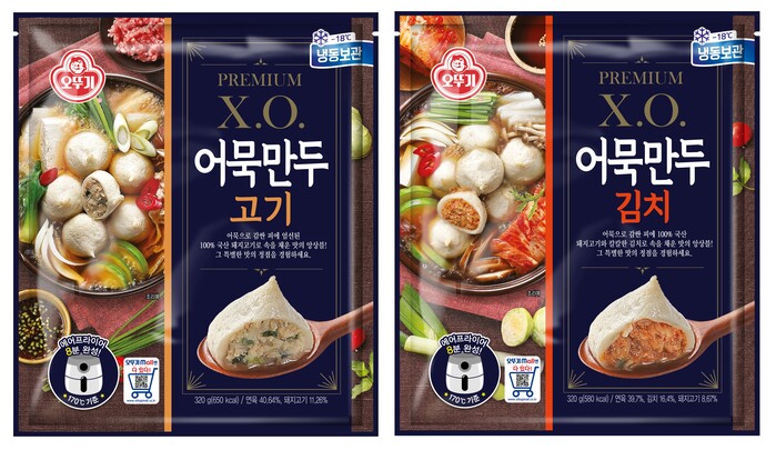 오뚜기 관계자는 "어묵으로 감싼 피에 국산 재료로 꽉 채운 ‘X.O 어묵만두’를 출시했다”며 “만두찜이나 어묵탕 등 다양한 조리방법으로 활용 가능한 제품”이라고 말했다. ‘X.O 어묵만두’는 이마트에서 구매 가능하다.