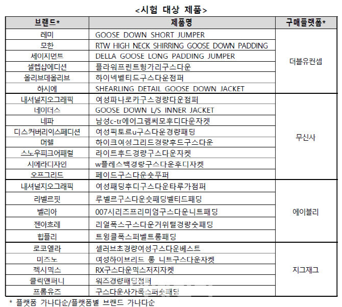 | ▲ 한국소비자원 구스다운 조사결과 |