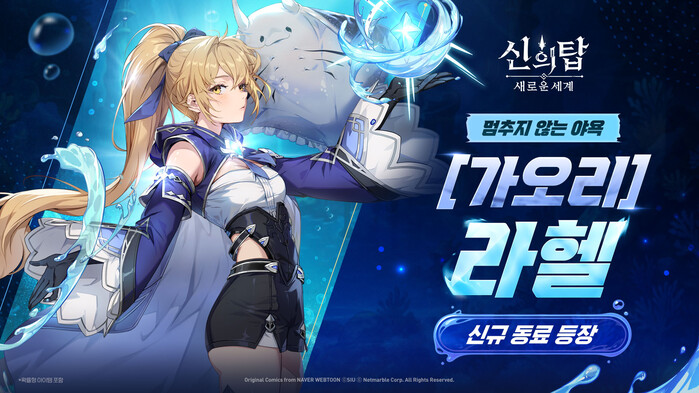 [메가경제=이상원 기자] 넷마블은 ‘신의 탑: 새로운 세계’ 신규 SSR+ 등급 동료 '가오리 라헬'과 SSR 등급 '금빛 잉어 주'를 업데이트했다고 27일 밝혔다.