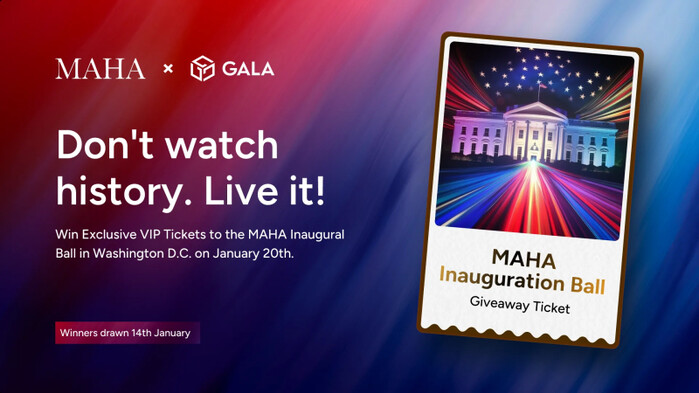 [메가경제=양대선 기자] 블록체인 엔터테인먼트 기업 갈라(Gala)가 오는 20일 워싱턴 D.C.에서 진행되는 로버트 F. 케네디의 취임식 ‘MAHA Inaugural Ball’에 참여할 수 있는 VIP 티켓 이벤트를 진행했다고 16일 밝혔다.