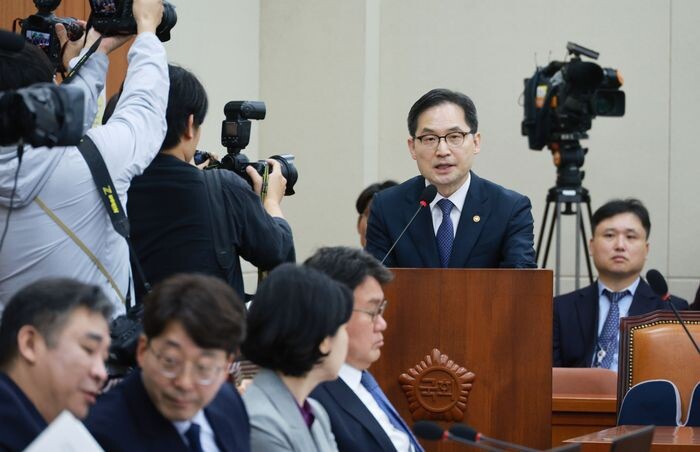 ▲한기정 공정위원장이 정무위 국감에서 현안을 설명하고 있다 [사진=연합뉴스] |