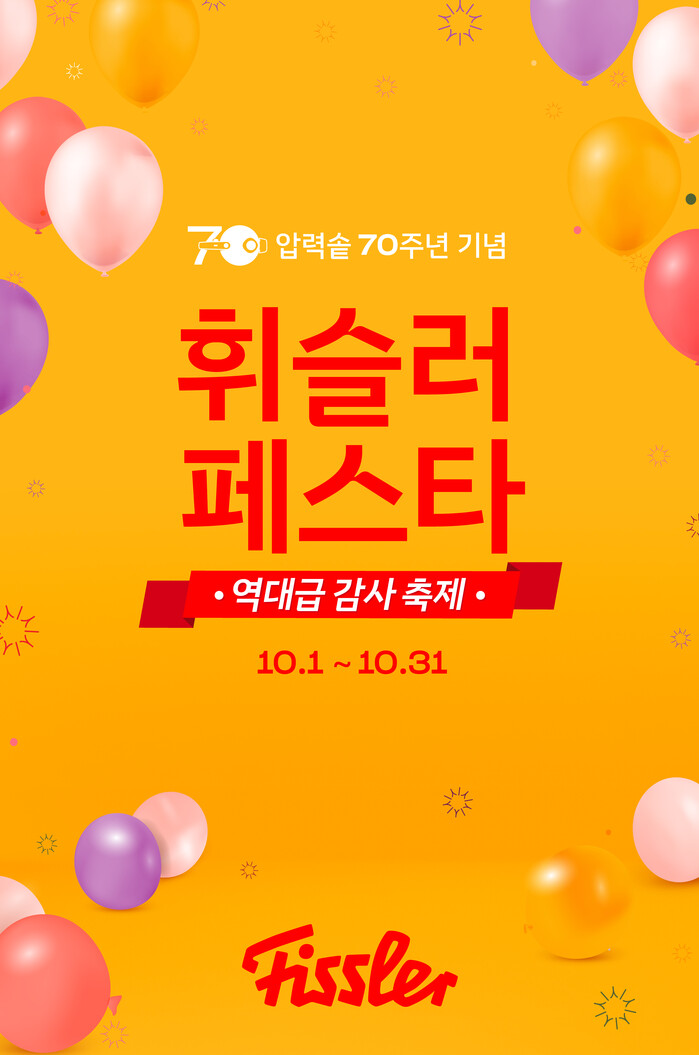 [메가경제=주영래 기자]독일 프리미엄 쿡웨어 브랜드 휘슬러코리아(대표이사 이경우)는 압력솥 출시 70주년을 기념해 10월 한 달간 역대급 감사 축제 ‘휘슬러 페스타’를 진행하다고 밝혔다.