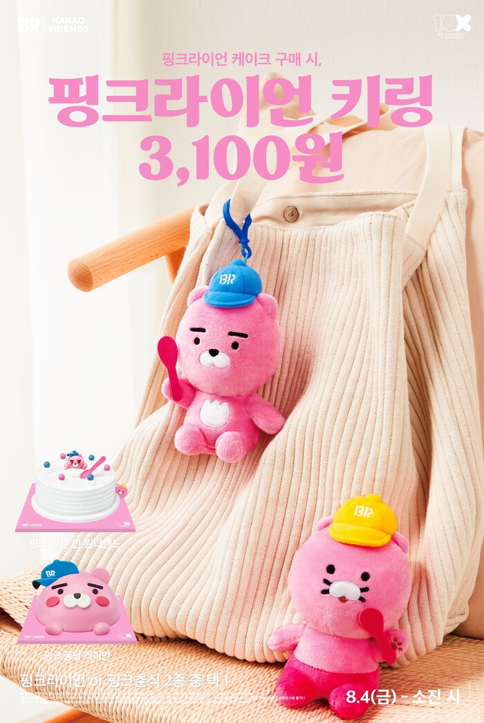 오는 8월 4일부터 오프라인 매장에서 ‘핑크 퐁당 라이언’ 또는 ‘핑크 라춘 인 원더랜드’ 케이크 구매 시, 키링 굿즈를 3,100원에 판매한다. 또, 4일부터 27일까지 해피앱 스캔 시 2천원 가격 혜택을 제공한다.