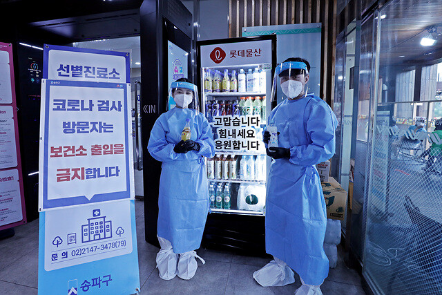 롯데물산은 송파구 관내 코로나19 선별진료소와 예방접종센터의 의료진들을 위해 음료를 지원한다.