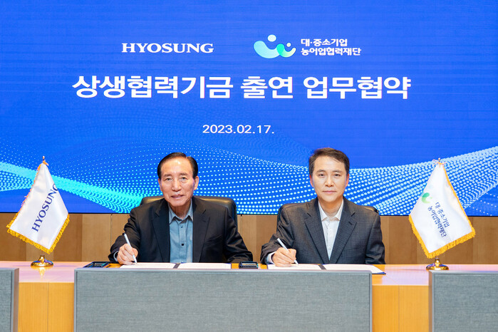 효성은 대-중소기업·농어업협력재단과 지난 17일 '대·중소기업 상생협력기금 및 농어촌상생협력기금 출연 협약'을 체결했다고 20일 밝혔다.
