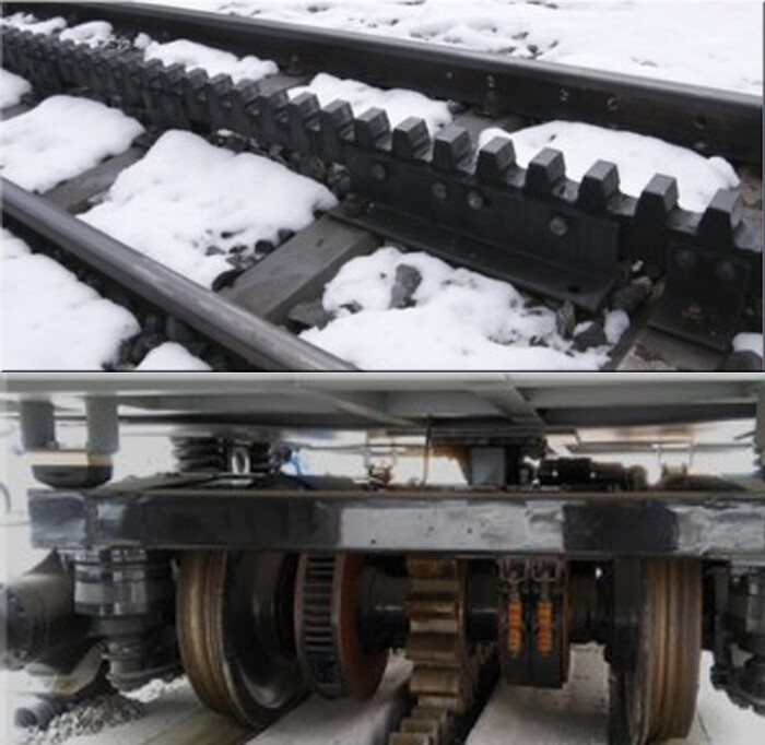 융프라우 철도는 궤간 1,000㎜의 협궤철도로 전 구간의 75%(7㎞)가 터널이며, 레일 중간과 차량에 톱니바퀴가 설치되었다.