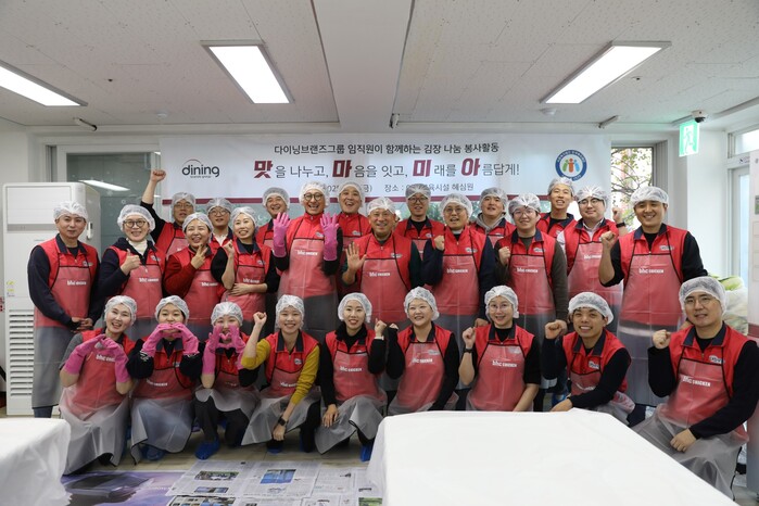 [메가경제=심영범 기자]다이닝브랜즈그룹이 지난 21일, 서울 용산구 아동복지시설 혜심원을 찾아 '사랑의 김장 나눔' 봉사활동을 진행했다고 24일 밝혔다.