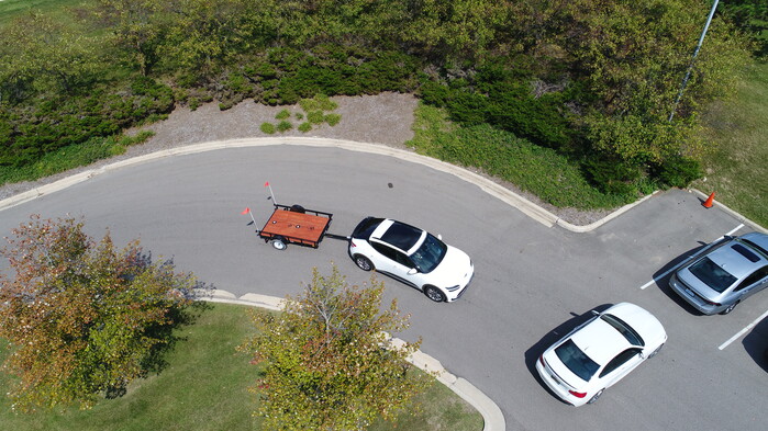 이번 행사에서 참가자들의 관심을 크게 끈 것은 트레일러 후방주행 보조시스템(TRA, Trailer Reverse Assistance)이다. 이 시스템은 트레일러를 장착한 차량이 후진 시 후방카메라 영상을 기반으로 자동으로 운전대를 조작해서 주행하는 기술이다. 국내와 달리 픽업트럭 수요가 높고 트레일러를 장착하는 경우가 많은 북미 시장 특성을 고려한 기술인데, GM 등 북미 완성차 업체들은 트레일러 주차 보조시스템에 관심이 높은 편이다. 현대모비스는 이번 행사에서 GV60에 이 기술을 장착해 참가자들이 직접 체험해 볼 수 있도록 했다.