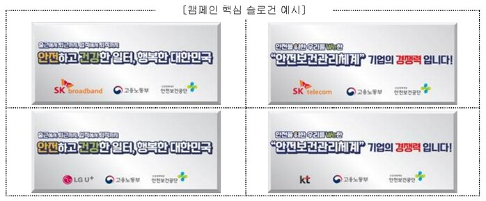 이번 캠페인은 통신업계를 대표하는 네 회사가 업무용 차량 총 3500대에 안전보건 핵심 메시지를 부착해 운행하는 형식으로 전개된다. 캠페인은 이달부터 6개월 이상 지속할 예정이다.