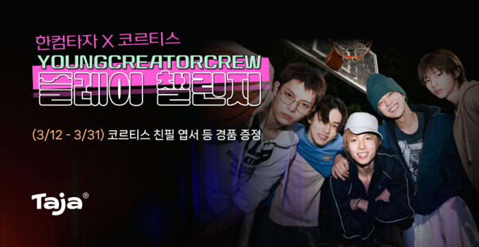 신규 콘텐츠 공개와 함께 ‘YOUNGCREATORCREW 플레이 챌린지’ 이벤트도 함께한다. 이번 이벤트는 3월 12일부터 31일까지 진행되며, 코르티스 협업 콘텐츠인 산성비·필사·판뒤집기 3종을 이용한 참여자를 대상으로 다양한 경품을 제공한다. 추첨을 통해 ▲코르티스 친필 사인 엽서(통합 플레이상 5명) ▲올리브영 1만원 기프티콘(7일 플레이상 7명, SNS 인증상 3명) ▲CU 5000원 기프티콘(참여상 300명) 등을 증정한다. 당첨자는 오는 4월 9일 한컴타자 홈페이지를 통해 발표될 예정이다.