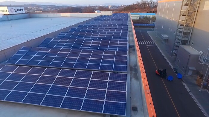 | ▲ 한화큐셀 진천공장 내 유휴부지에 설치된 루프탑 태양광 발전소. [사진=한화큐셀] |
