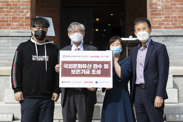 | ▲ (왼쪽부터) 슈퍼캣 이태성 디렉터, 문화유산국민신탁 김종규 이사장, 옥션 홍윤희 이사, 문화유산국민신탁 우경준 상임이사 [사진=넥슨 제공] |