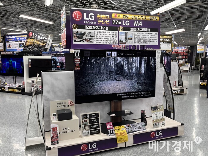 | ▲ 일본 교토에 위치한 가전 전문 매장 '요도바시 카메라'에 LG전자의 2024년형 올레드 에보 M4가 전시돼 있다. [사진=메가경제] |